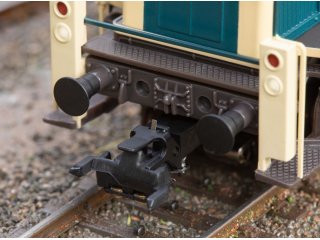 Modell: Mit Digital-Decoder mfx+ und umfangreichen Geräuschfunktionen. Geregelter Hochleistungsantrieb zentral eingebaut. 4 Achsen über Kardan angetrieben. Haftreifen. Fahrtrichtungsabhängig wechselndes Dreilicht-Spitzensignal und 2 rote Schlusslichter konventionell in Betrieb, digital schaltbar. Spitzensignal an Lokseite 2 und 1 jeweils separat digital abschaltbar. Beleuchtung mit wartungsfreien warmweißen Leuchtdioden (LED). Der Lokführer dreht sich in die jeweilige Fahrtrichtung und schaut bei Stillstand aus dem Fenster. Mit neuer Telex-Kupplung und Führerstandsbeleuchtung. Kupplungswalzer. Führerstand mit Relief-Inneneinrichtung. Angesetzte Griffstangen und Geländer aus Metall. Zusätzliche Trittstufen unter dem Führerstand für größere Gleisradien liegen bei. Länge über Puffer 16,4 cm.