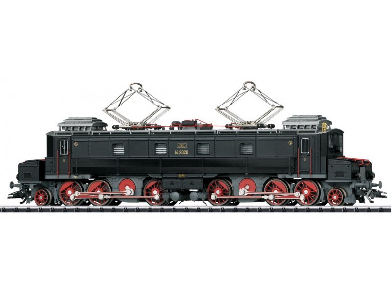 Vorbild: Güterzug-Elektrolokomotive Serie Ce 6/8 I "Köfferli" der Schweizerischen Bundesbahnen (SBB). Ausführung im frühen Auslieferungszustand. Fiktive schwarze Grundfarbgebung mit grauem Fahrgestell und roten Rädern. Mit Stangenpuffer, stirnseitigen Führerstandstüren ohne Fenster und mit Übergangsblechen, mit Besandungsanlage, ohne Falschfahrsignal und ohne Integra-Signum Magnet. Lok-Betriebsnummer 14 2020. Betriebszustand der 1920er-Jahre.
